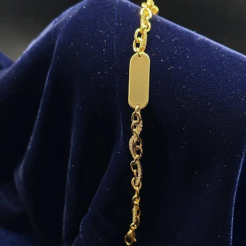 The Precious Plait 18k Gold Plated Bracelet is a beautiful blend of elegance and style, making it a must-have for every jewellery collection. Designed with intricate detailing and a polished gold-plated finish, this bracelet offers a luxurious yet affordable look. It is lightweight and comfortable, making it perfect for everyday wear, whether at work, gatherings, or casual outings. As part of the best artificial jewellery brands in Pakistan, this bracelet for girls is made to complement any outfit effortlessly. The secure clasp ensures a perfect fit, while the stylish plaited design adds a sophisticated touch. Wear it alone for a sleek look or pair it with other jewellery pieces for a statement style.