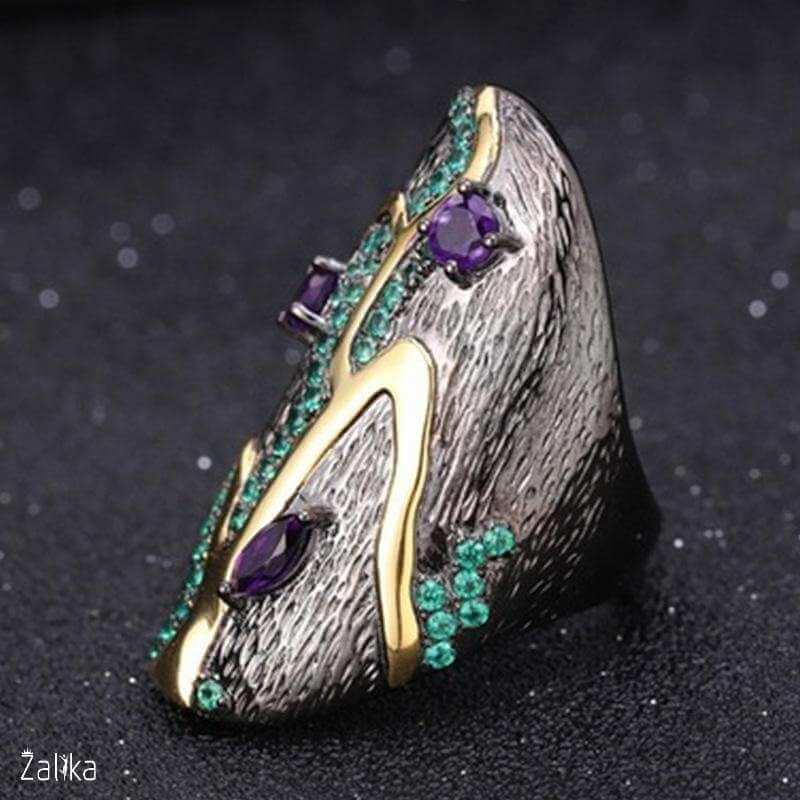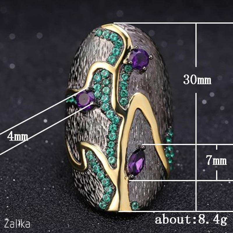 Antique Two Tone Purple Green Crystal Ring is a stunning piece of fine jewelry perfect for women who love unique and elegant designs. This ring features a striking combination of purple and green crystals set in an antique-inspired two-tone metal band. The intricate design and high-quality craftsmanship make it a standout accessory for any occasion. Whether you're looking for a statement piece or a special gift, this green crystal ring is sure to impress. A nice present for casual occasions, birthdays, Mother’s Day, or Valentine’s Day. Zalika Women provides a wide variety of rings for women's.