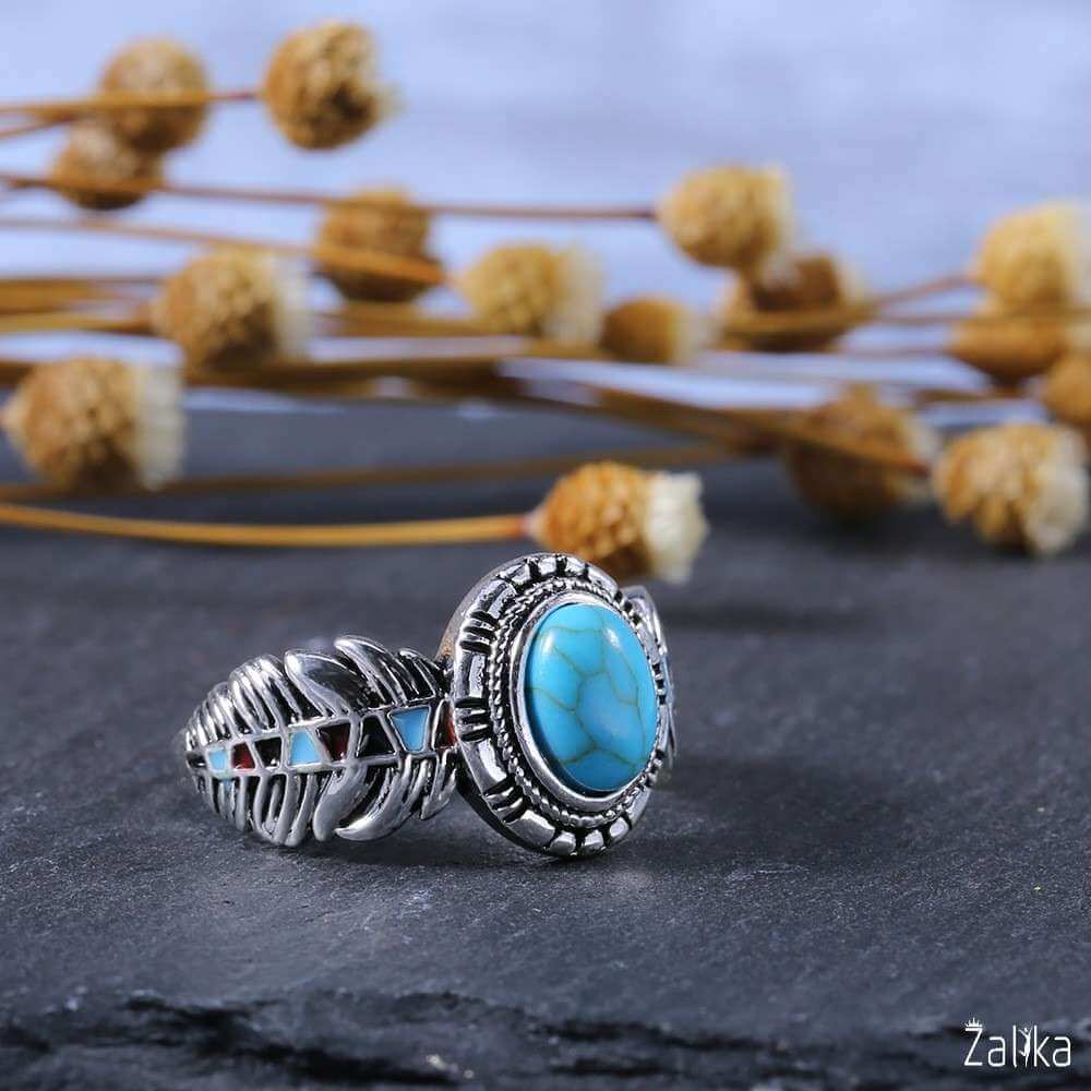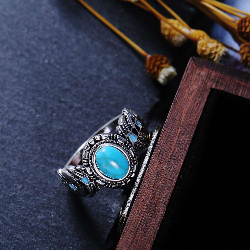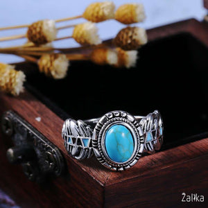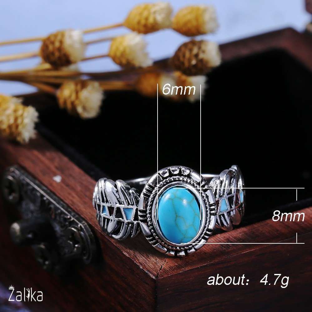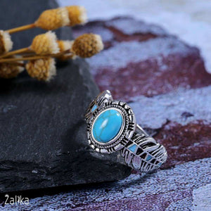 Introducing the "Bohemia Vintage Turquoises Sea Opal Stone Ring," an exquisite piece of artificial jewelry that captures the essence of vintage charm and bohemian style. This stunning ring features a beautifully crafted silver band with intricate detailing, making it a perfect addition to any jewelry collection. The centerpiece of this ring is a captivating opal stone with turquoise hues, measuring 8mm by 6mm, set in a vintage-inspired design. Weighing about 4.7g, this ring offers both elegance and comfort, ideal for everyday wear or special occasions. A nice present for casual occasions, birthdays, Mother’s Day, or Valentine’s Day. Zalika Women provides a wide variety of rings for women's.