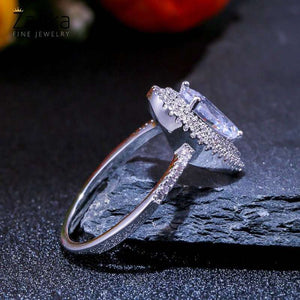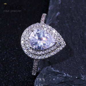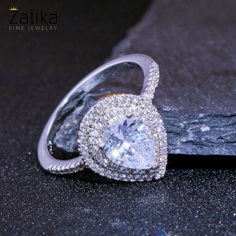 Introducing the "Pear Shape Zircon Ring," a dazzling piece of fine jewelry that exudes elegance and sophistication. This stunning ring features a beautifully cut pear-shaped zircon stone as its centerpiece, surrounded by a halo of smaller zircon stones that enhance its brilliance. The high-quality silver band is meticulously crafted to provide a secure and stylish setting for the central stone, making this ring a perfect addition to any jewelry collection. A nice present for casual occasions, birthdays, Mother’s Day, or Valentine’s Day. Zalika Women provides a wide variety of rings for women's.