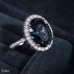 Blue Gemstone Oval Cut Ring is a beautiful piece of artificial jewelry that stands out with its striking design. This engagement ring features an oval-cut blue gemstone at its center, surrounded by a halo of sparkling stones. Made with 925 sterling steel, it offers both elegance and durability. Perfect for women who appreciate fine jewelry, this ring adds a touch of sophistication to any outfit. Its timeless design makes it a great choice for engagements and other special occasions. A nice present for casual occasions, birthdays, Mother’s Day, or Valentine’s Day. Zalika Women provides a wide variety of rings for women's.