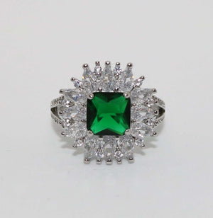 Introducing our Green Color 925 Silver Plated Zircon Chunky Ring, crafted with high-quality materials and featuring a stunning synthetic stone. This stunning flower-style zircon ring features a vibrant green stone, surrounded by sparkling accents set in a silver band. As an ideal propose ring, it exudes elegance and charm, making it a standout among rings for women. The silver ring for women is designed to capture attention and add a touch of sophistication to any occasion. A nice present for casual occasions, birthdays, Mother’s Day, or Valentine’s Day. Zalika Women provides a wide variety of rings for women's.