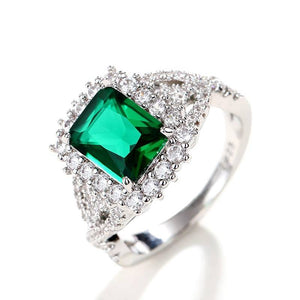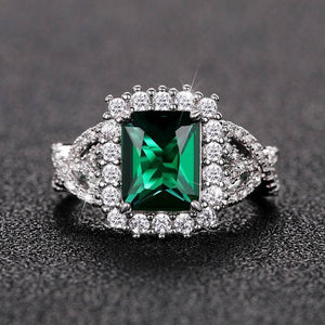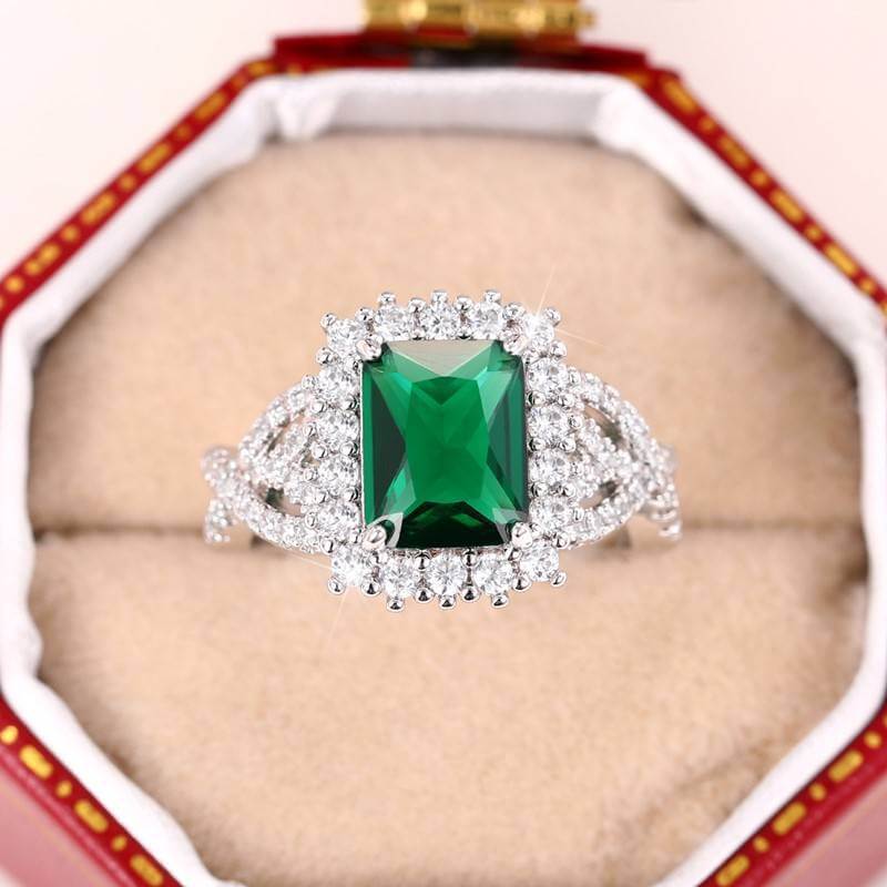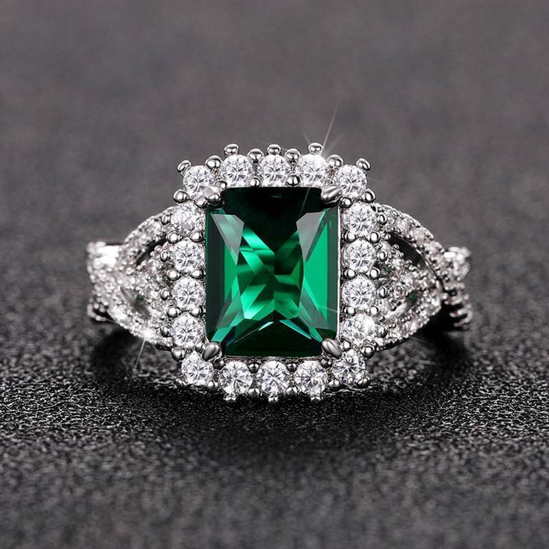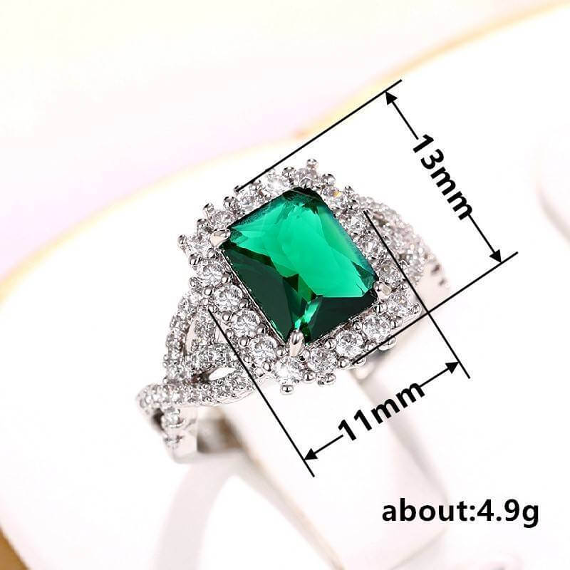Introducing the Green Emerald Cut Gemstone Ring – a stunning piece of jewelry that radiates elegance and sophistication. This beautiful ring features a large, vibrant green emerald cut gemstone at its center, measuring 13mm by 11mm. The central stone is surrounded by sparkling clear stones that enhance its brilliance and add a touch of luxury. Zalika Women provides a wide variety of rings for women's.