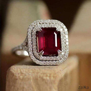 Introducing the "Red Radiant Cut Silver Luxury Ring," a striking piece of fine jewelry that exudes elegance and sophistication. This stunning ring features a vibrant red gemstone, expertly cut in a radiant shape, set in a luxurious silver band. The centerpiece ruby is surrounded by a double halo of sparkling zircon stones, enhancing its brilliance and adding a touch of glamour. The high-quality silver band ensures durability and comfort, making this ring perfect for special occasions or as a thoughtful gift for your loved one. A nice present for casual occasions, birthdays, Mother’s Day, or Valentine’s Day. Zalika Women provides a wide variety of rings for women's.