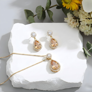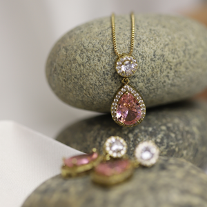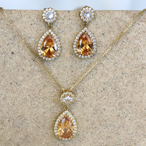 Elevate your elegance with this stunning crystal big stone jewelry set, featuring radiant crystals paired with antique gold polish detailing. The luxurious combination creates a timeless, sophisticated look perfect for special occasions or everyday glamour. Each piece showcases intricate craftsmanship with a warm, vintage-inspired finish that complements all skin tones. A versatile addition to any jewelry collection that brings sparkle and grace to your personal style.