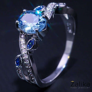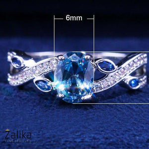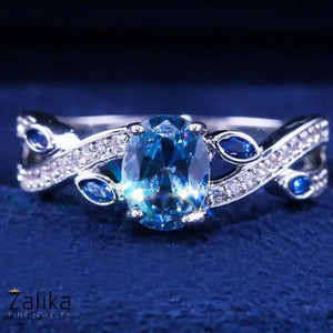 Introducing the "Water Blue Crystal Ring," a stunning piece of fine jewelry that combines the serenity of blue gemstones with the elegance of a meticulously crafted design. This exquisite ring features a captivating 6mm oval water blue crystal as its centerpiece, set in a high-quality silver band. The band is adorned with additional blue gemstone accents and sparkling zircon details, creating a harmonious and luxurious look. Perfect for special occasions or as a thoughtful gift to impress your loved one, this ring embodies grace and sophistication. A nice present for casual occasions, birthdays, Mother’s Day, or Valentine’s Day. Zalika Women provides a wide variety of rings for women's.