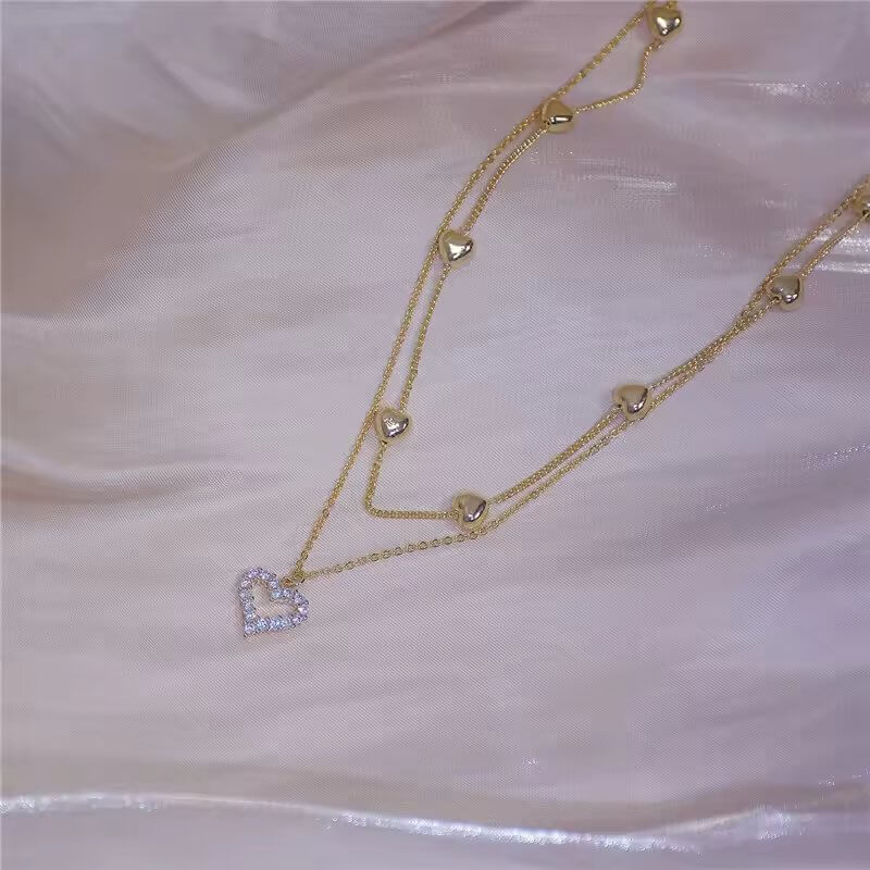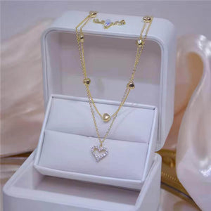 Introducing our 14k Gold Double Layer Heart Necklace, crafted with high-quality materials and featuring a stunning synthetic stone. Here's what makes it stand out: