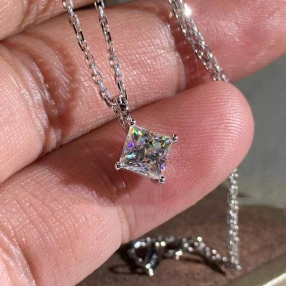 CZ Princess Cut Generous Zirconia Silver Necklace