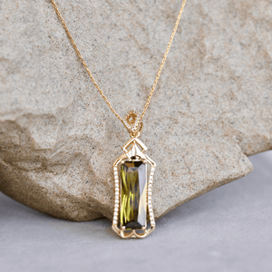 Rectangle Big Zircon Pendant with Chain