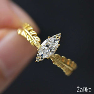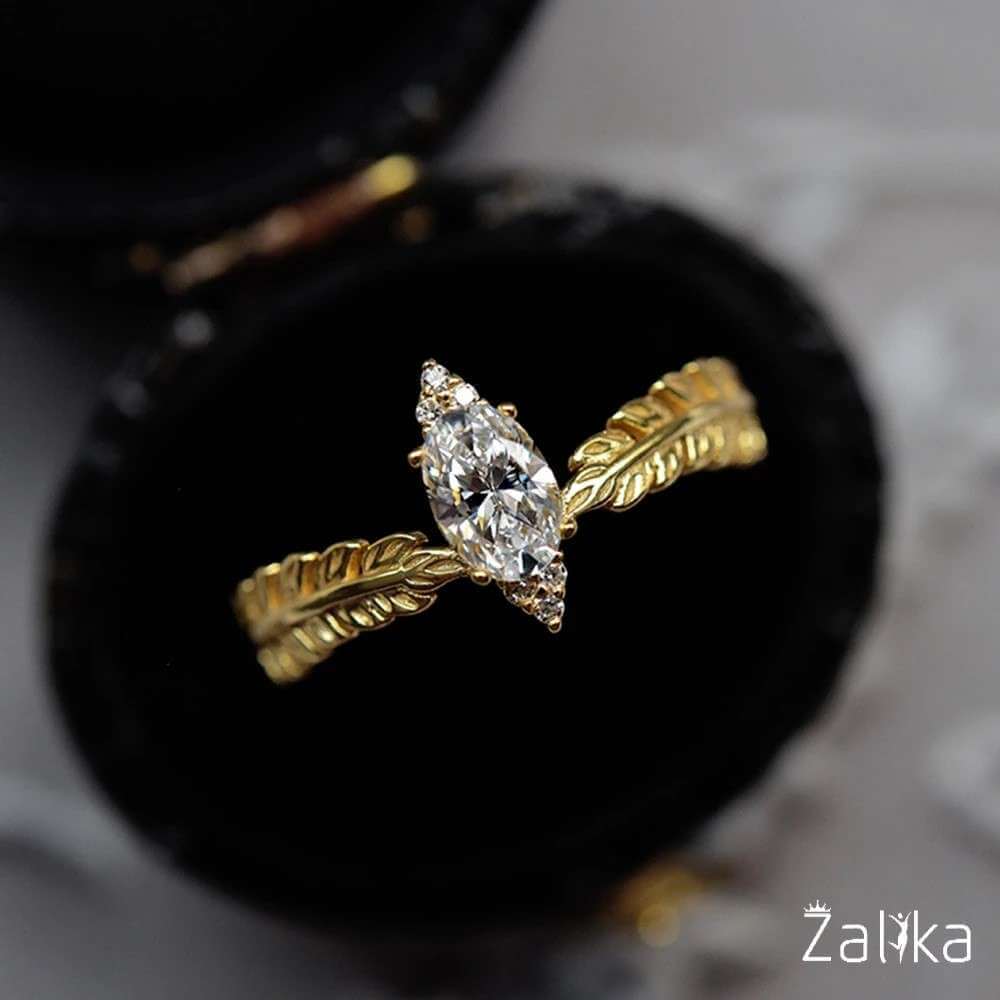 Introducing the epitome of elegance and sophistication – our Gold-Plated Leaf Design Ring. This exquisite piece features a stunning marquise-cut zircon stone, meticulously set between delicate leaf motifs. The band is intricately crafted with a gold-plated finish, adding a touch of luxury to the natural-inspired design. A nice present for casual occasions, birthdays, Mother’s Day, or Valentine’s Day. Zalika Women provides a wide variety of rings for women's.