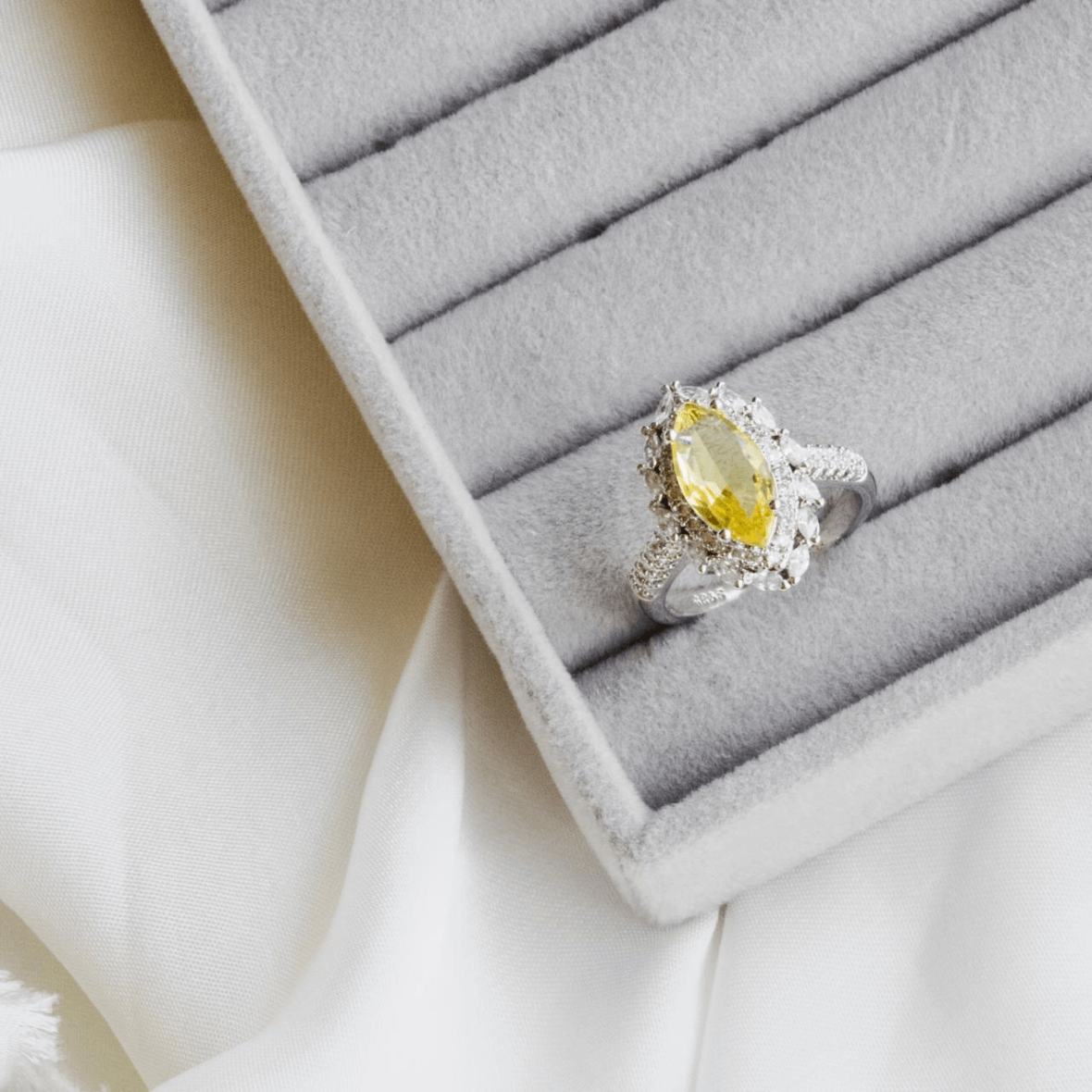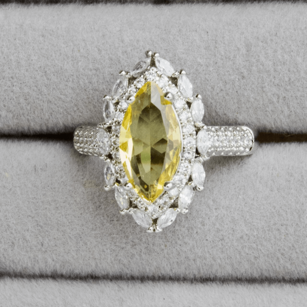 Make a bold statement with our exquisite Marquise Cut 925 Silver Ring. This stunning silver ring features a dazzling marquise-cut yellow zircon, surrounded by sparkling stones that enhance its brilliance. Crafted from high-quality 925 sterling silver, this ring combines durability with elegance, making it a perfect choice for both special occasions and everyday wear. The intricate design and radiant zircon stone make this 925 silver ring a true masterpiece. A nice present for casual occasions, birthdays, Mother’s Day, or Valentine’s Day. Zalika Women provides a wide variety of rings for women's.
