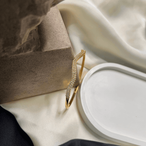 Wave Pave Gold Plated Bangle