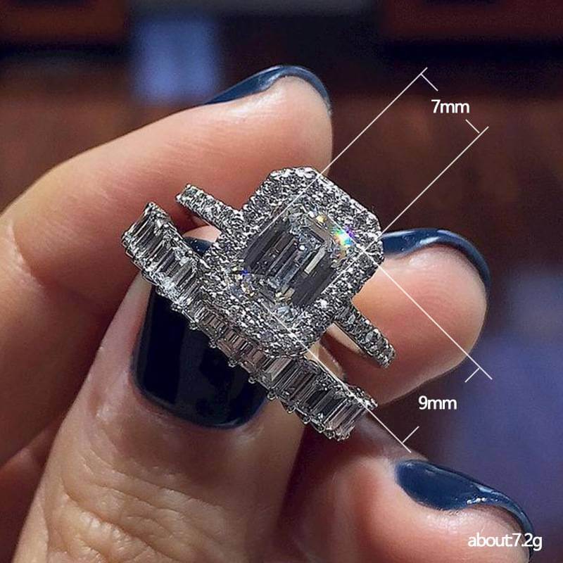 Celebrate your love with this stunning engagement ring set, perfect for making unforgettable memories. This exquisite set features a dazzling emerald cut ring at its center, surrounded by sparkling stones that enhance its brilliance. Designed for women who appreciate elegance and style, this silver ring set combines sophistication with affordability. Crafted from high-quality materials, this affordable silver ring offers both beauty and durability. Make your special moment even more memorable with this exceptional engagement ring, a timeless addition to any collection of rings for women. A nice present for casual occasions, birthdays, Mother’s Day, or Valentine’s Day. Zalika Women provides a wide variety of rings for women's.