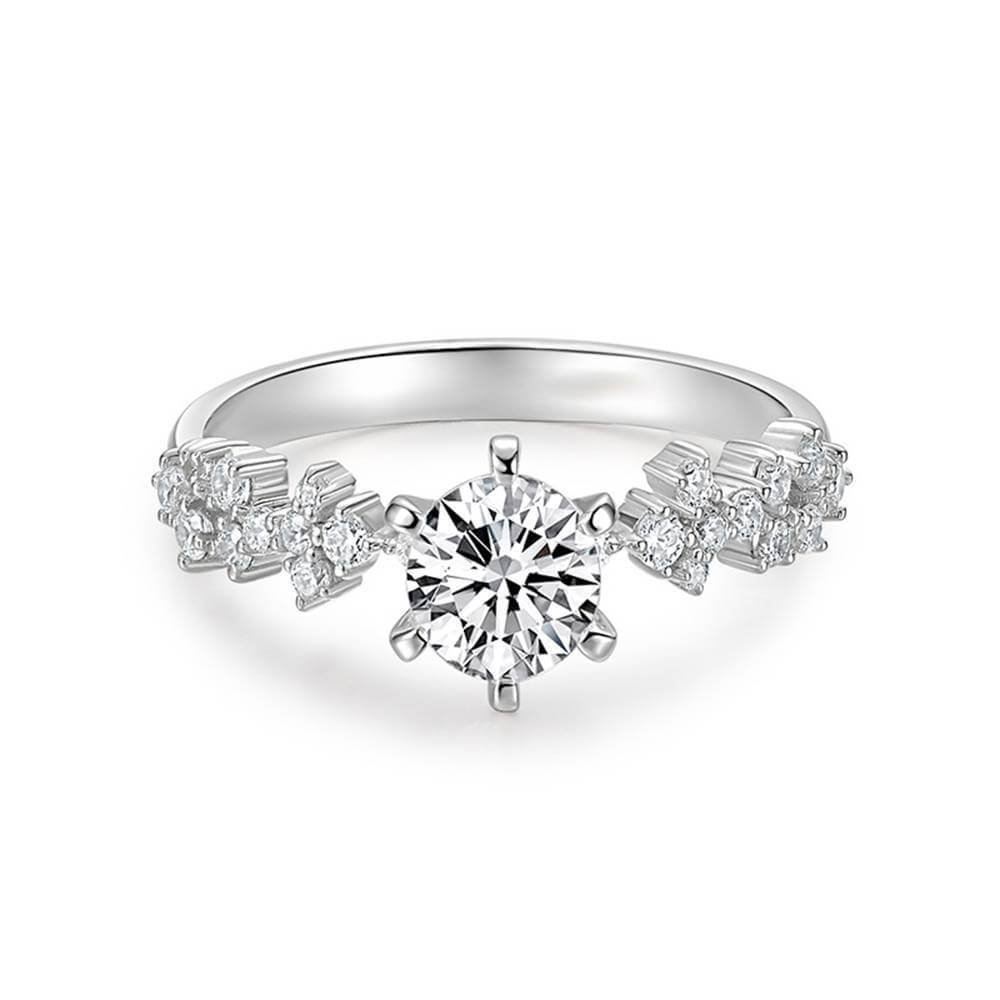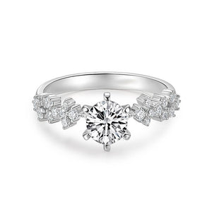 Introducing the "Round Cut Moissanite 925 Silver Plated Ring," a remarkable piece of artificial jewelry that exudes elegance and brilliance. This exquisite ring features a high-quality 925 silver-plated band, ensuring durability and a lustrous finish. The highlight of this ring is the stunning round-cut moissanite center stone, measuring 6mm in diameter, surrounded by a series of smaller sparkling stones that enhance its overall allure. Weighing about 3g, this ring is lightweight and comfortable, perfect for daily wear or special occasions. A nice present for casual occasions, birthdays, Mother’s Day, or Valentine’s Day. Zalika Women provides a wide variety of rings for women's.