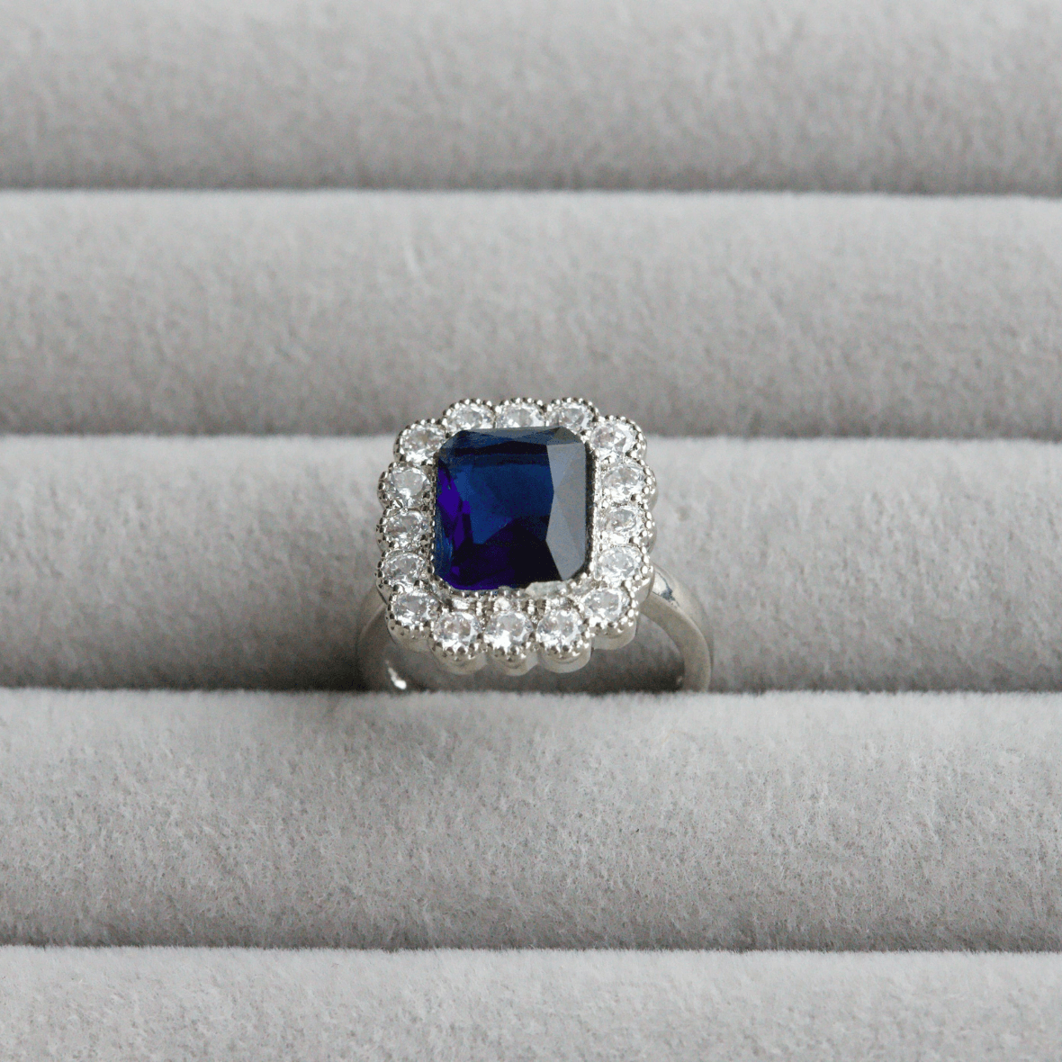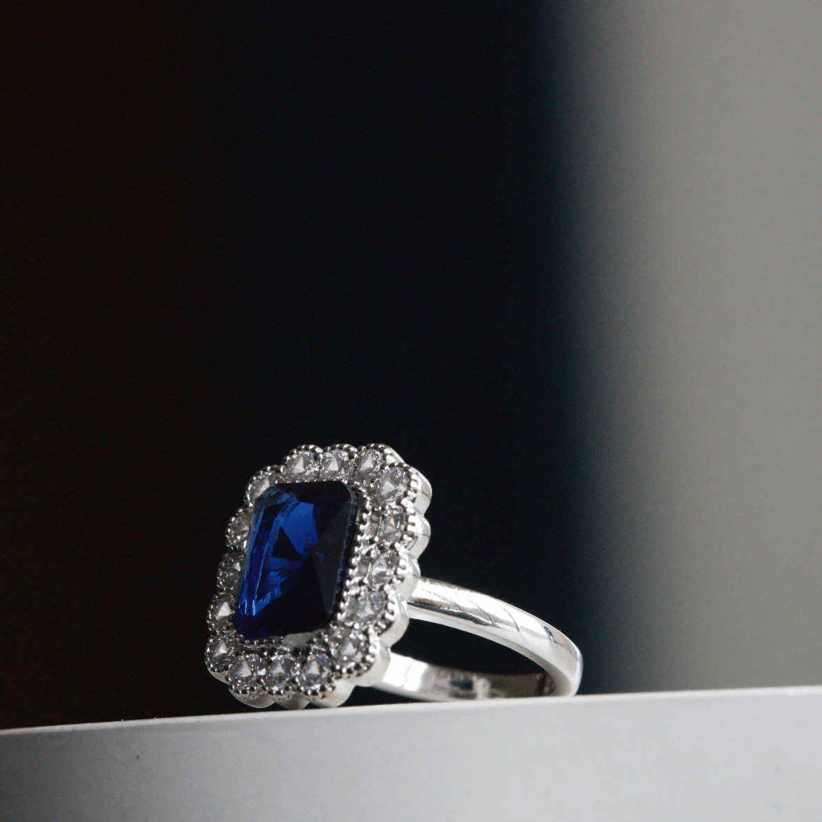 Introducing our Big Sea Blue Sapphire Square Stone Ring, crafted with high-quality materials and featuring a stunning synthetic sapphire stone. Here's what makes it stand out: