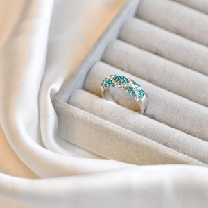 Introducing the Blue And White Crossing Zircon Ring – a stunning piece of fine jewelry designed to add elegance and sparkle to any outfit. This beautiful zircon ring features a unique crossing pattern of blue and white zircon stones, set in a polished silver band. The intricate design and vibrant colors make it a standout choice among rings for women. Zalika Women provides a wide variety of rings for women's.