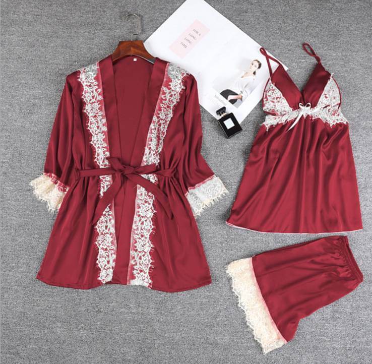 Bridal Silk Gown 3 Piece Set - Burgundy