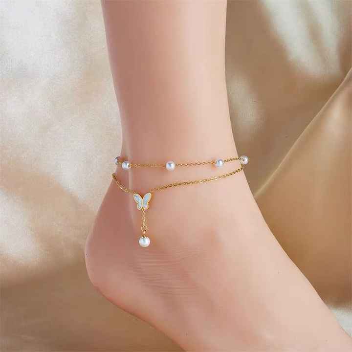 Double-layer Pearl Butterfly Anklet