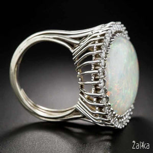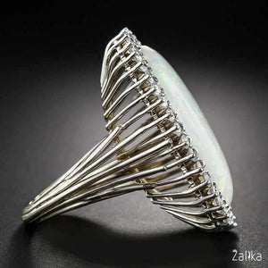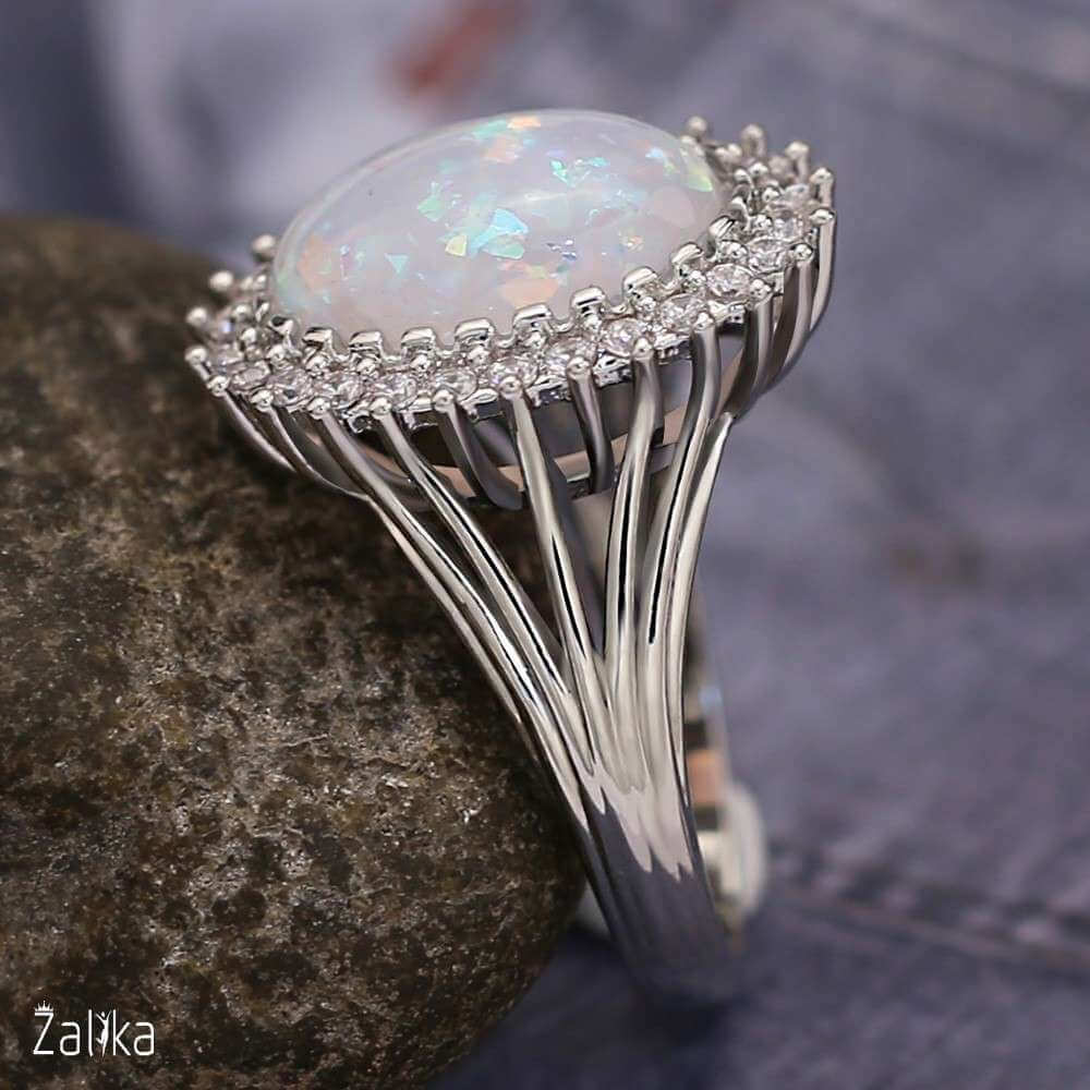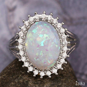 Introducing the "Egg-Shaped Opal Flower Ring," a mesmerizing piece of fine jewelry that combines elegance with a touch of nature-inspired beauty. This stunning ring features a large 14mm x 10mm opal stone that showcases a dazzling array of multi-colored shades, mimicking the captivating beauty of a flower in bloom. Surrounding the opal are sparkling zircon accents arranged in a delicate floral pattern, adding to the ring's charm and sophistication. The high-quality silver band ensures durability and comfort, making this ring perfect for special occasions or as a thoughtful gift for your loved one.