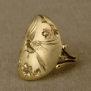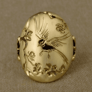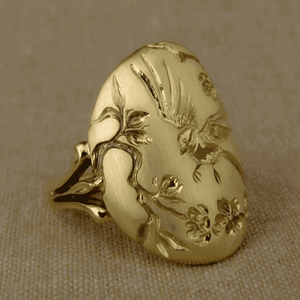 Lady Birds Tree Carved Wide Gold Retro Rings