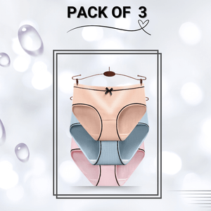 Polyester Bow Panties Pack Of 3 ( Pink , Skin , Sky blue)