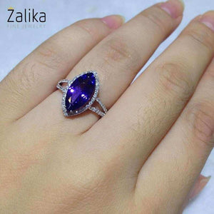 Marquise Cut Ring features a stunning purple gemstone, beautifully set in a double band adorned with sparkling stones. The unique marquise cut of the purple ring adds a touch of sophistication and glamour, making it a perfect choice for women who appreciate distinctive and elegant jewelry. A nice present for casual occasions, birthdays, Mother’s Day, or Valentine’s Day. Zalika Women provides a wide variety of rings for women's.
