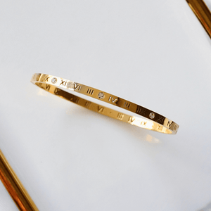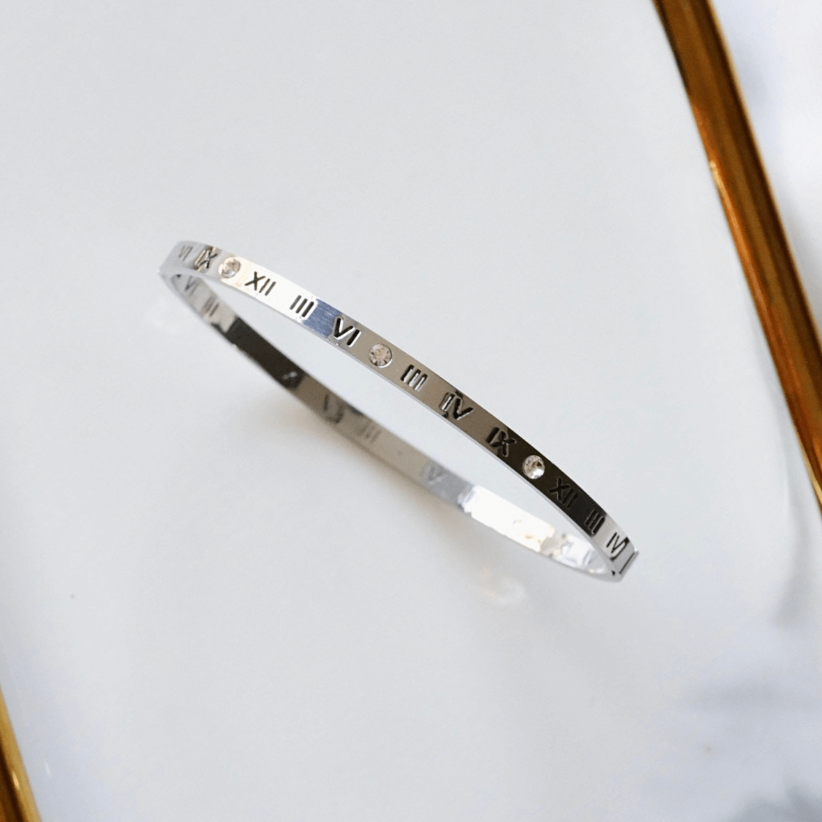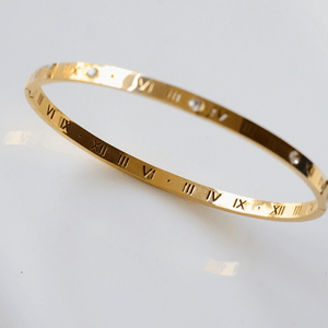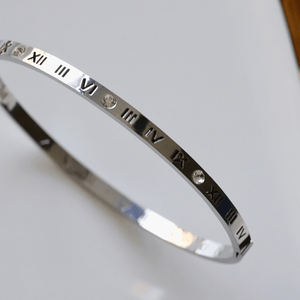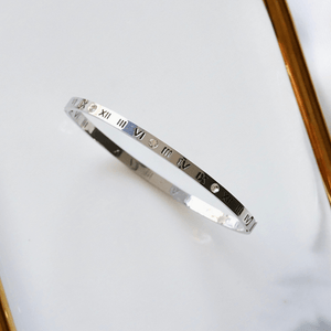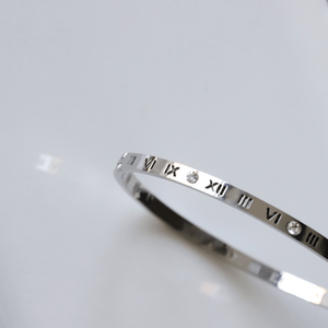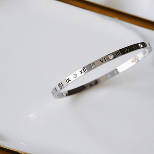 Introducing the Roman Numeral Bangles, a perfect blend of elegance and modern style. This trendy bangle features an intricate engraved bangle design with timeless Roman numerals, making it a must-have accessory for any fashion enthusiast. Whether you're dressing up for a special occasion or adding a touch of sophistication to your everyday look, this bangle is the ideal choice.