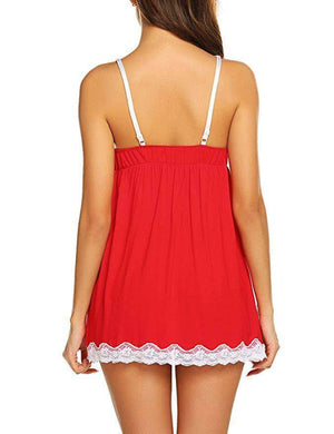 Romantic Baby Doll Lace Back 2 Piece Set-Red