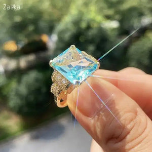 Super Big Pure Light Blue Zircon Ring