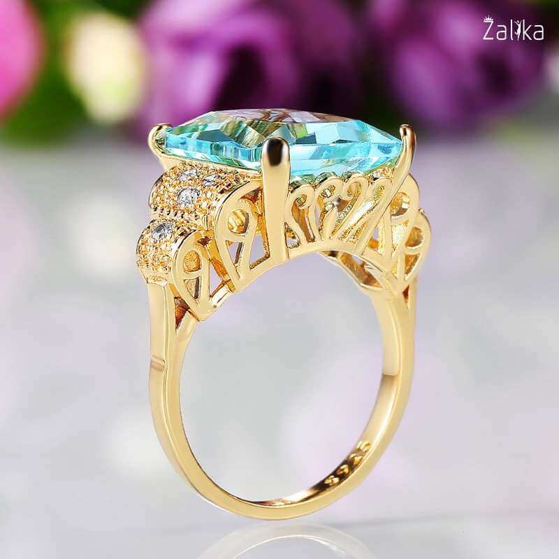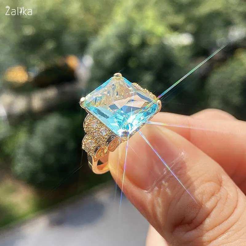 Introducing the Super Big Pure Light Blue Zircon Ring – a truly magnificent piece that makes a bold statement. This stunning ring features a large, rectangular-cut light blue zircon stone measuring 15mm, set in a beautifully crafted silver band adorned with intricate detailing and sparkling accents. The combination of the radiant blue zircon and the elegant silver setting creates a captivating look that is both luxurious and timeless. Perfect for special occasions or adding a touch of glamour to your everyday style, this blue zircon ring is a must-have. Buy this exquisite silver ring online and make an unforgettable impression. A nice present for casual occasions, birthdays, Mother’s Day, or Valentine’s Day. Zalika Women provides a wide variety of rings for women's.