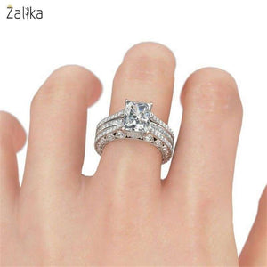 Introducing the Three Pieces 925 Silver Ring Set – a stunning collection of three beautifully crafted rings. Made from high-quality 925 silver, this silver ring set is designed to add elegance and sparkle to any occasion. The set features a brilliant rectangular centerpiece stone, surrounded by smaller dazzling stones, all set in intricate, detailed bands.