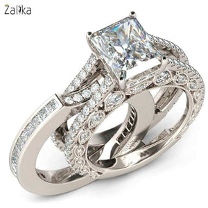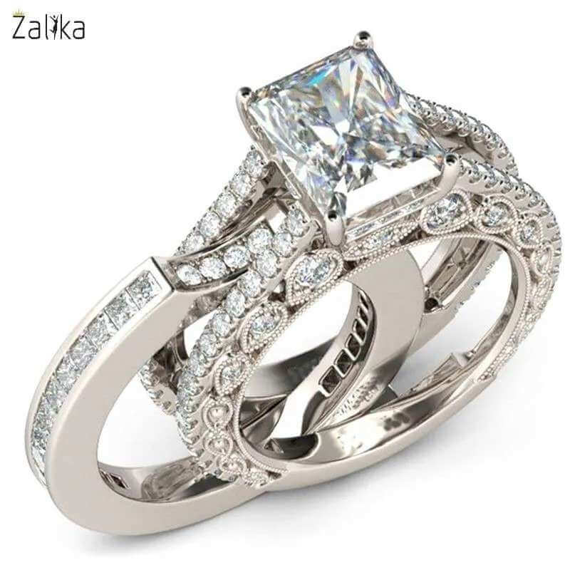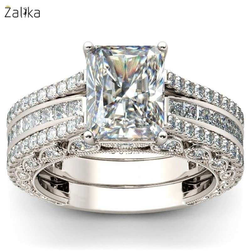 Each ring in this set is designed to complement the others perfectly. The combination of the radiant stones and the delicate detailing on the bands makes this set a perfect choice for special occasions, engagements, or everyday wear. Whether you wear them together or individually, these rings are sure to make a statement.