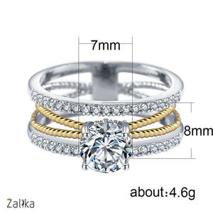 Introducing the Zircon Two-tone Ring – a stunning collection of three beautifully crafted rings. Made from high-quality 925 silver, this silver ring set is designed to add elegance and sparkle to any occasion. The set features a brilliant rectangular centerpiece stone, surrounded by smaller dazzling stones, all set in intricate, detailed bands.